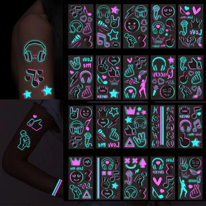 Luminous Music Festival Tattoo Glowing Dance Party Sticker Temporary